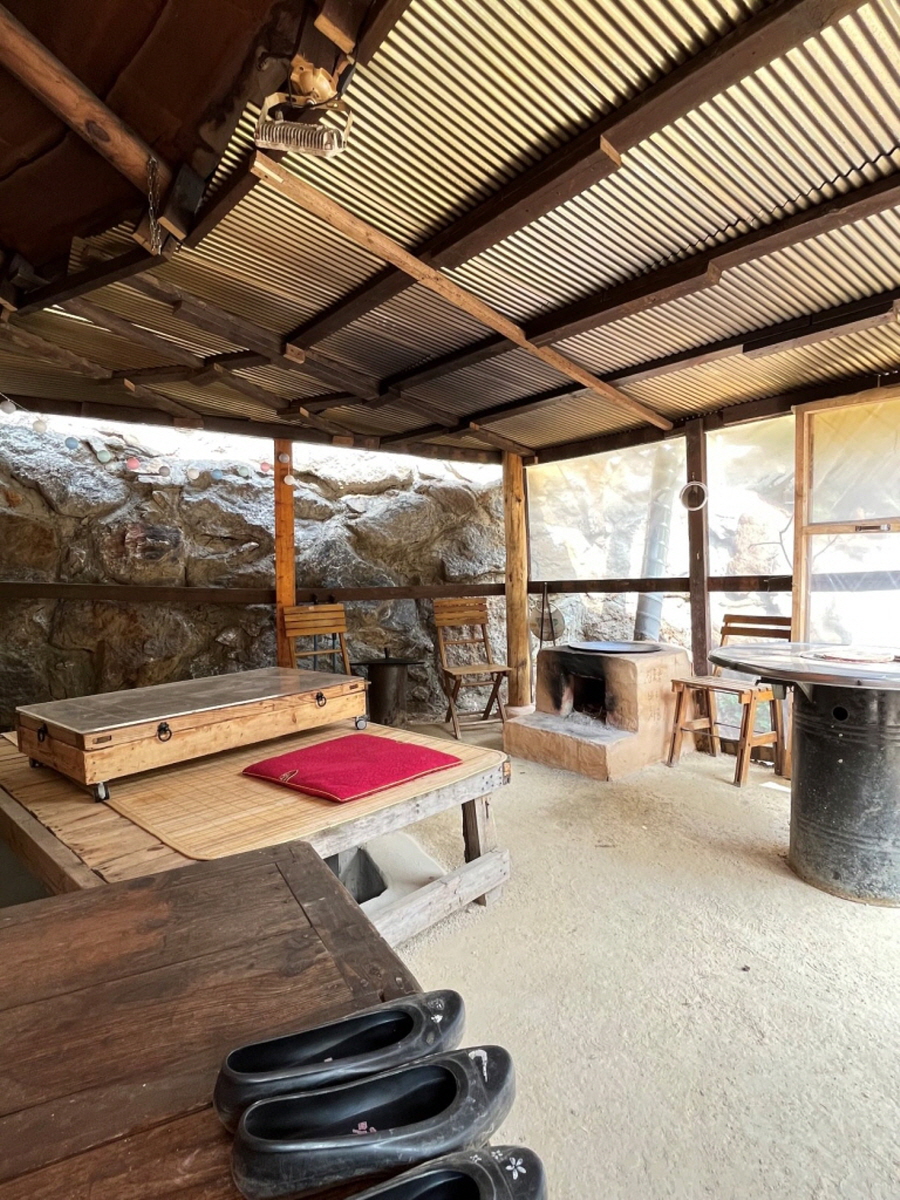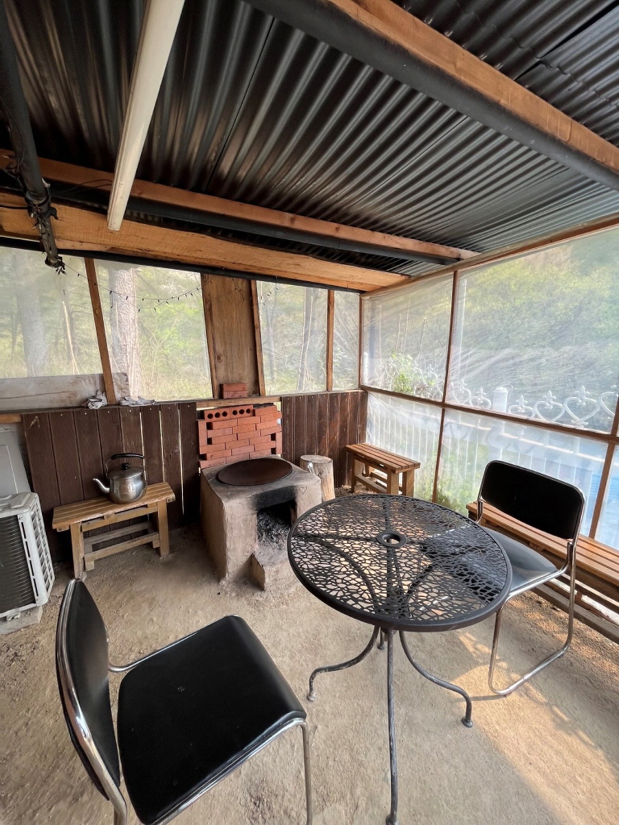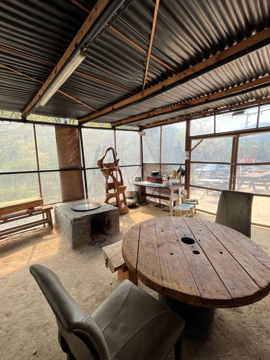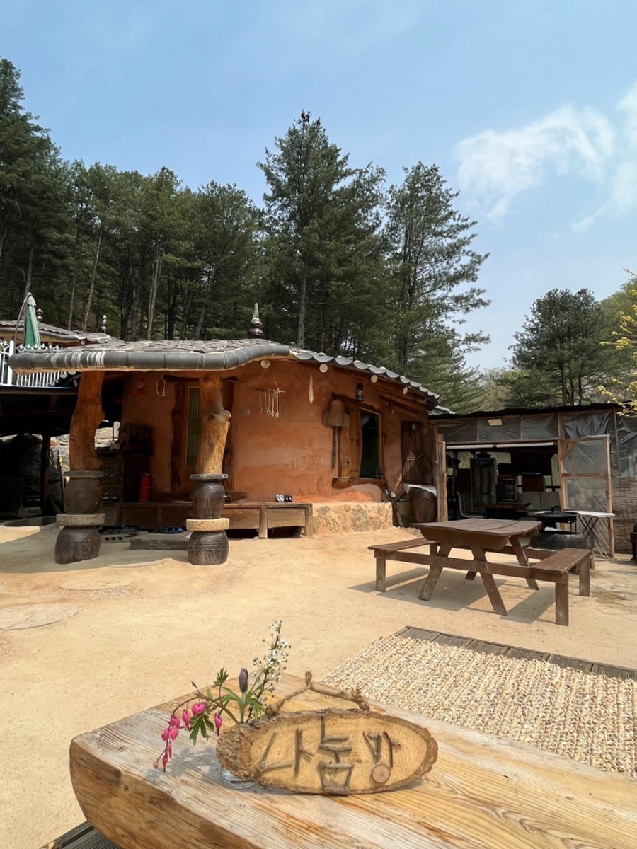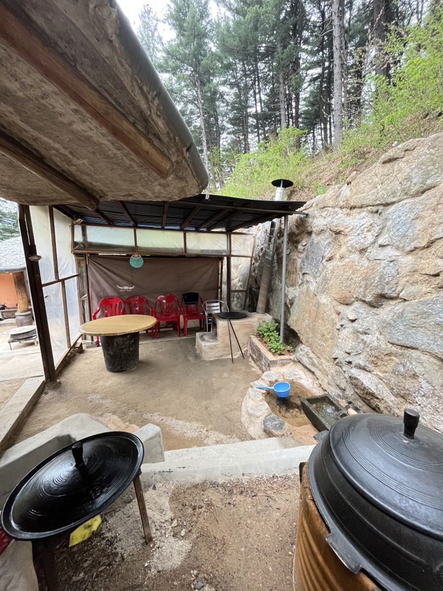 100% 순수 황토와 볏집을 섞어 양파자루에 담아 벽을 만들고 육송나무로 문들과 지붕을 만들었습니다. 자연의 집에서 힐링할 수 있습니다.