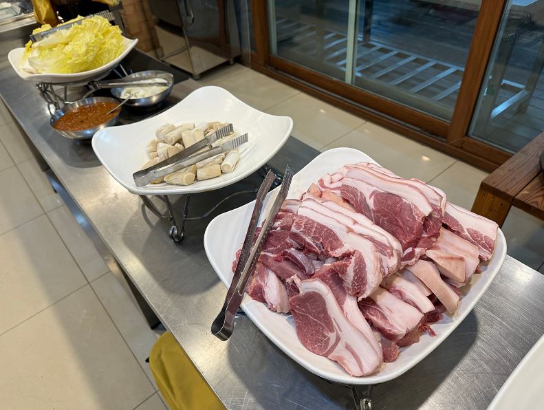 - 첫째날 점심: 한돈 등심 수제 돈가스가 나오는 뷔페식